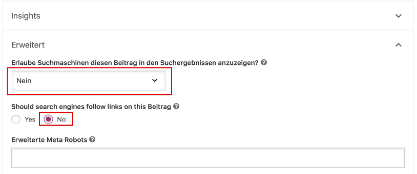 In seltenen Fällen gibt es allerdings auch noch die Möglichkeit, diesen Content einfach auf Noindex zu setzen und Google so zu signalisieren, dass der Inhalt nicht in den Suchergebnissen auftauchen muss.